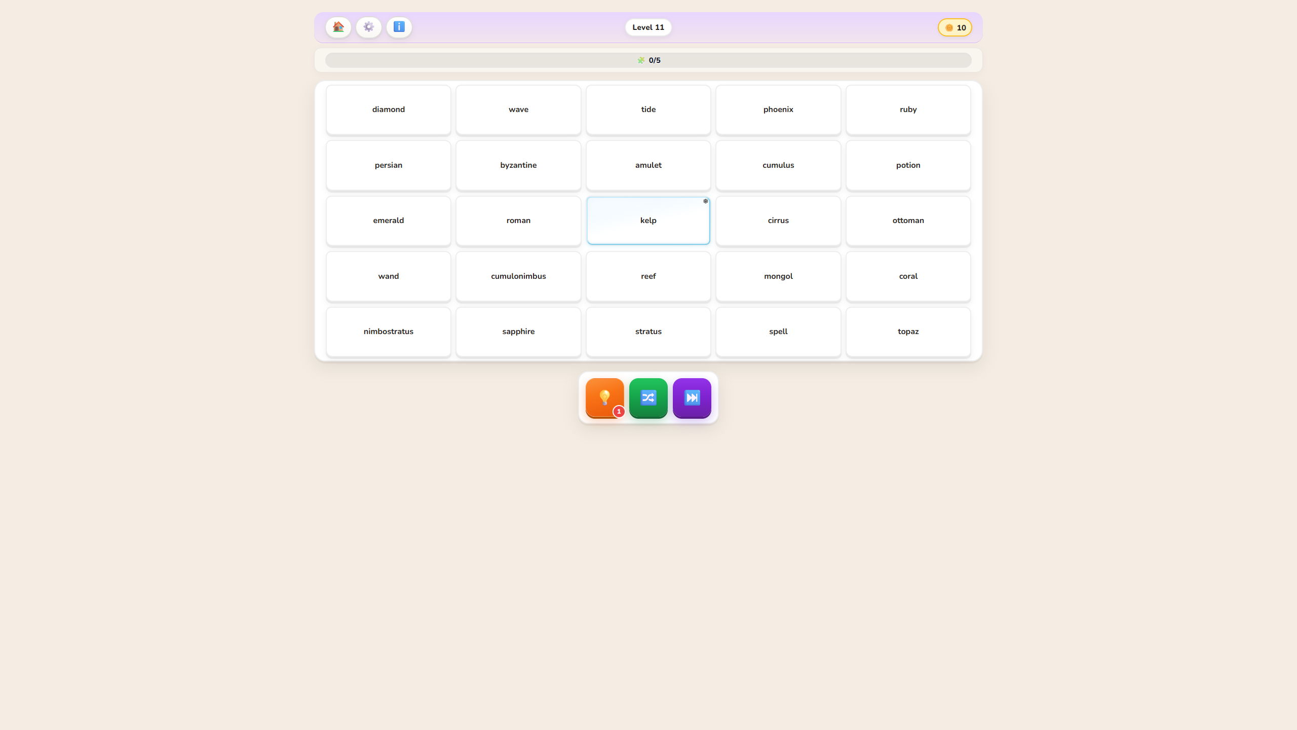- You're given a grid of shuffled word tiles